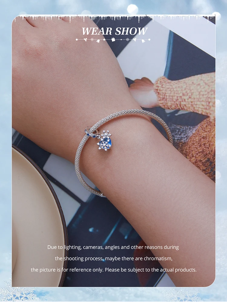925 Sterling Silver Glacier Charm - Snowflake Heart